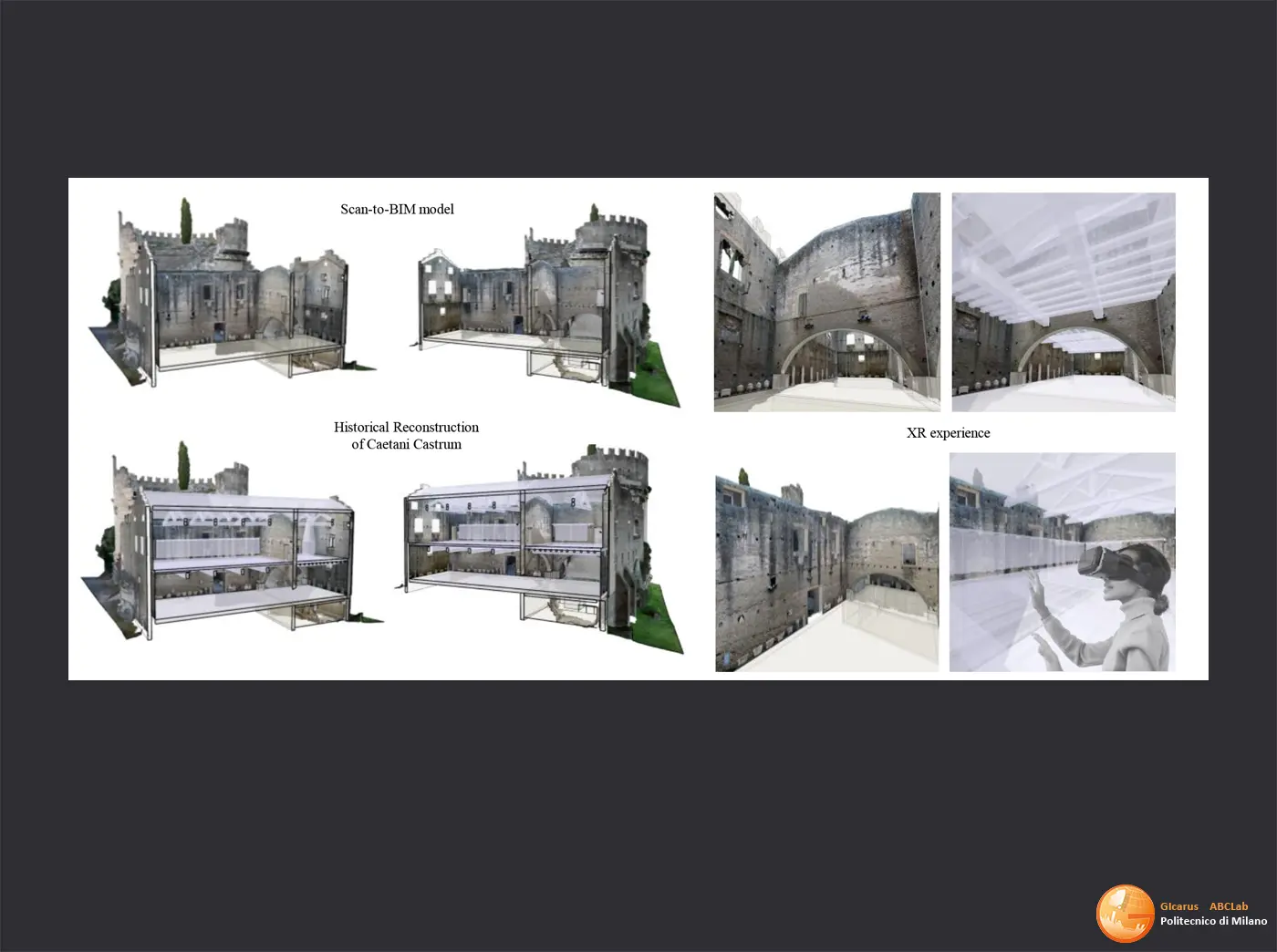 Textured digitization and modeling to support VR/AR/XR/Holograms/Videomapping design, dissemination and communication (Environments of the Mausoleum of Cecilia Metella and Santa Maria Nova).