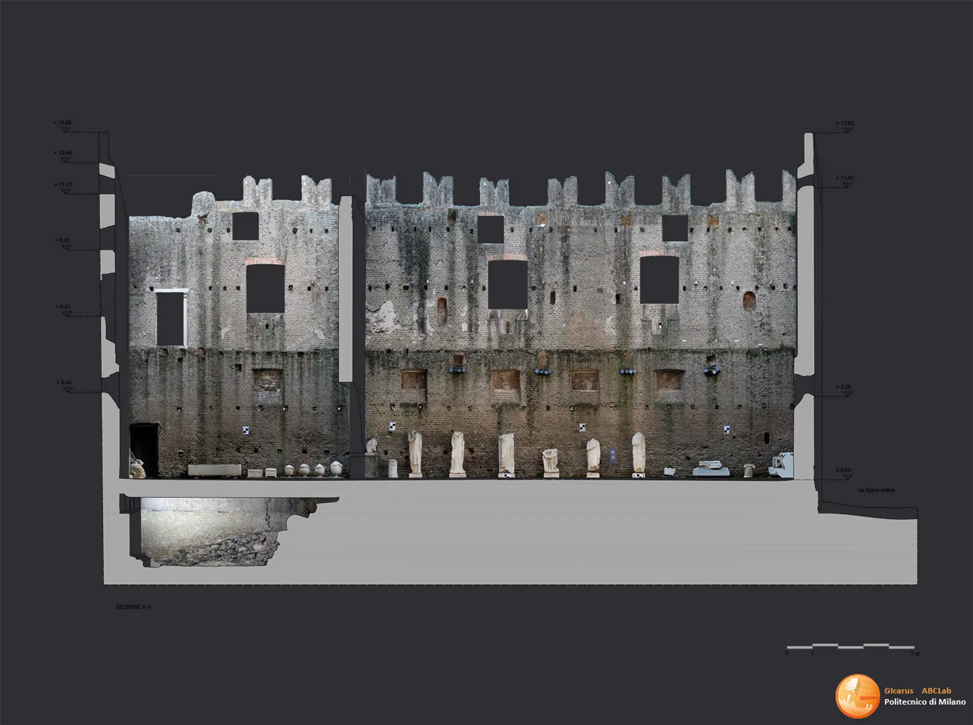 The project is part of the study activities aimed at supporting the design of multimedia accessibility’ path works between the third and fifth mile of the Appia Antica. In particular, the design of multimedia environments and accessibility’ paths for VR/AR/XR stations required a specific survey and modeling activity aimed at generating supporting digital models.