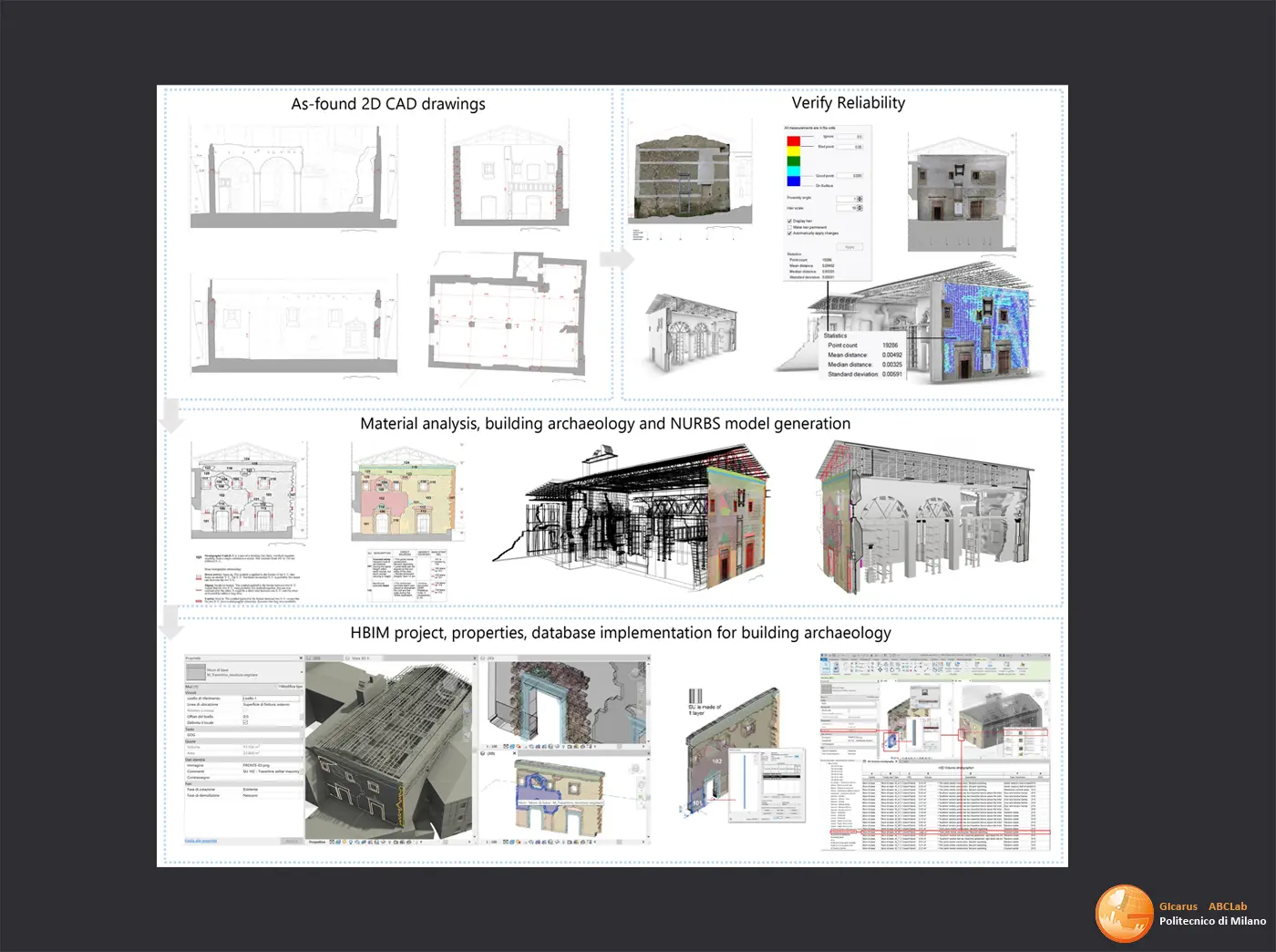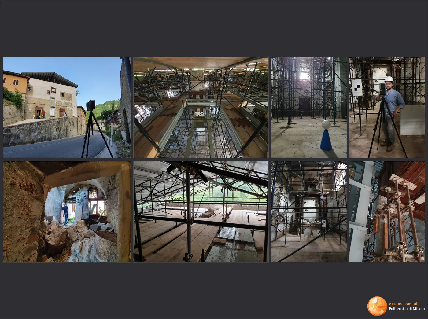 Investigations, laser scanner surveys for structural checks, BIM for structural monitoring: geometry and analysis of materials and construction techniques.