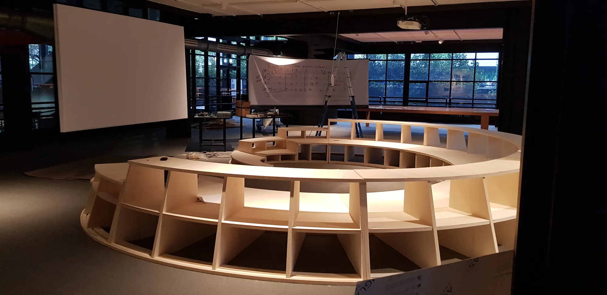 Conca is a small auditorium of approximately 7x6 meters that can accommodate 30-35 people, combining the use of parametric modeling programs with the elegance of dry assembly techniques and CNC machined wood. Inspired by the sinuous shapes of Mangiarotti's iconic projects, Conca presents a space where art, technology and nature harmoniously converge.