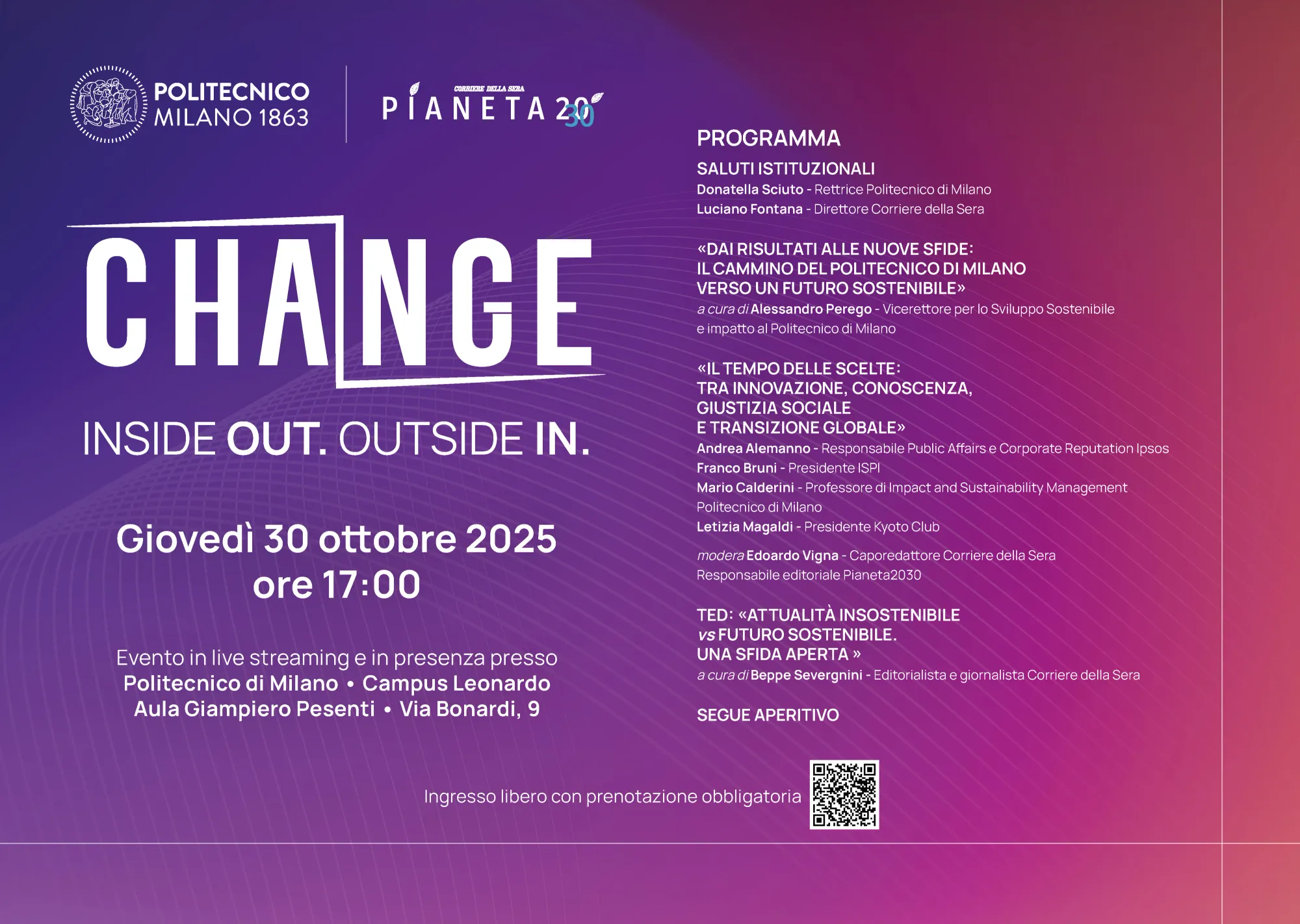 On October 30, the Politecnico di Milano, in collaboration with Corriere di Milano – Pianeta 2030, will open its doors for the third edition of Change, an event dedicated to sustainability, social innovation, and cultural change.