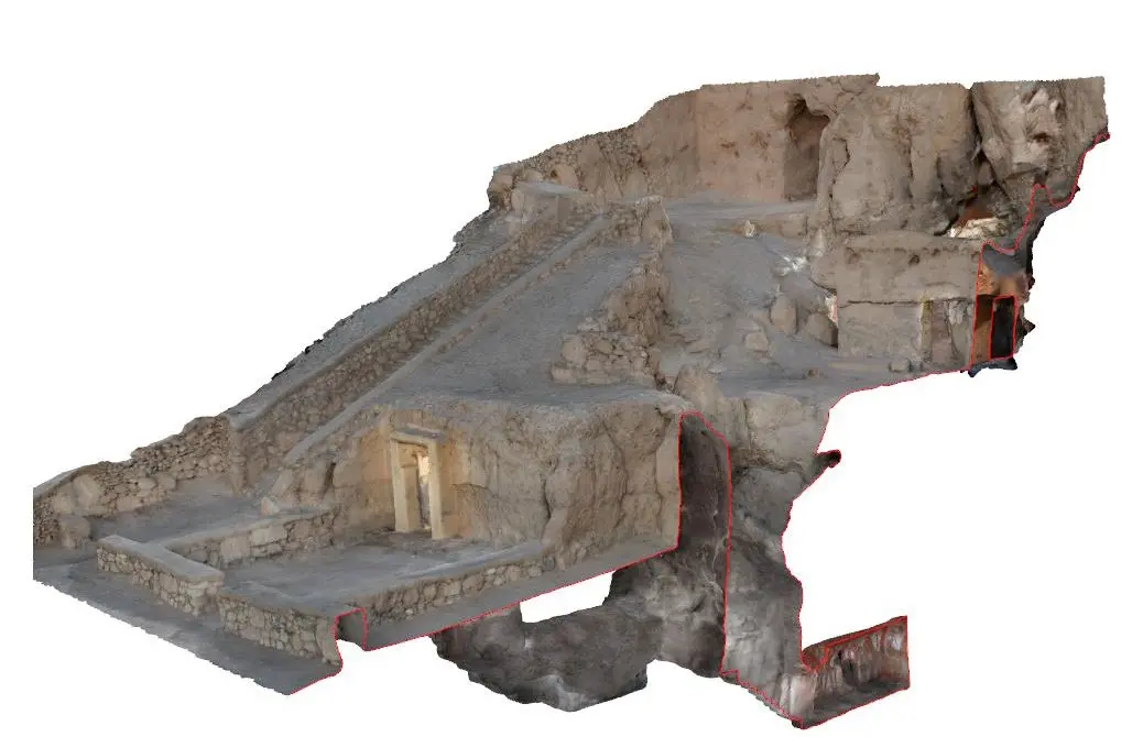 Il rilievo tridimensionale è stato condotto con approccio fotogrammetrico multi-scala: una per l’architettura del complesso funerario e una per i dettagli, come iscrizioni e decorazioni.