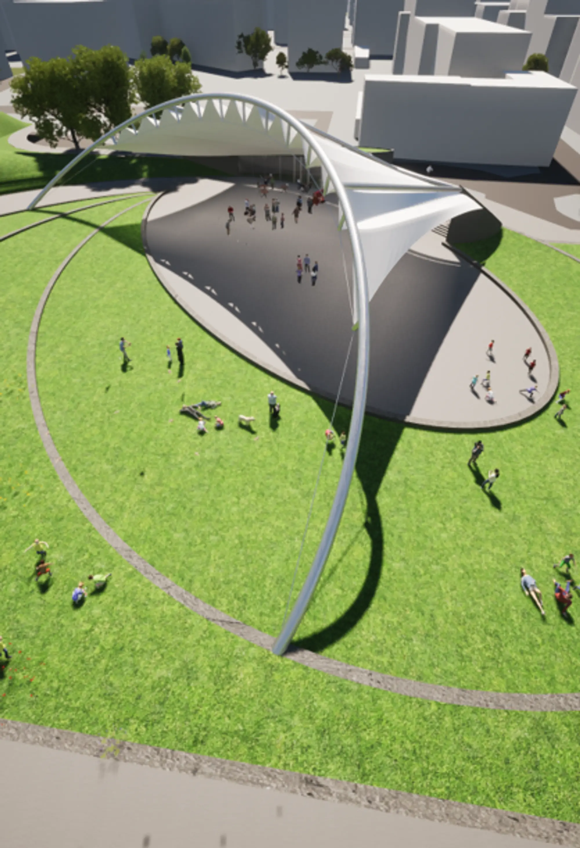 L’Amministrazione Comunale di Cinisello Balsamo intende attrezzare uno spazio pubblico per ospitare eventi di differente natura (culturale, piacere, loisir, socialità, etc.). TAN ha prestato supporto progettuale al RUP per lo sviluppo dell’opera da realizzarsi deve poter svolgere molteplici funzioni il cui “filo conduttore” risulta essere la multifunzionalità. Gli eventi ospitabili spaziano infatti da quelle culturali (concerti – anche bandistici – rassegne cinematografiche, sagre ed eventi, dibattiti e incontri), a quelle ricreative (manifestazioni danzanti, flash mob, esercizio fisico all’aperto, eventi culinari e sportivi) a quelle di socializzazione per l’intera città o per suoi gruppi intermedi (ricorrenze civili e religiose, anniversari associazioni, etc.). Nello specifico gli interventi coinvolgono un'area di circa 5700 mq, accessibile da Via C. De Ponti a Nord, Via C. Meani a Ovest, il parco di Villa Ghirlanda a Sud e l’edificio sede del Gruppo Alpini Di Cinisello Balsamo ad Est. Il lotto in un contesto a destinazione principalmente residenziale, con una elevata concentrazione di aree verdi e servizi.