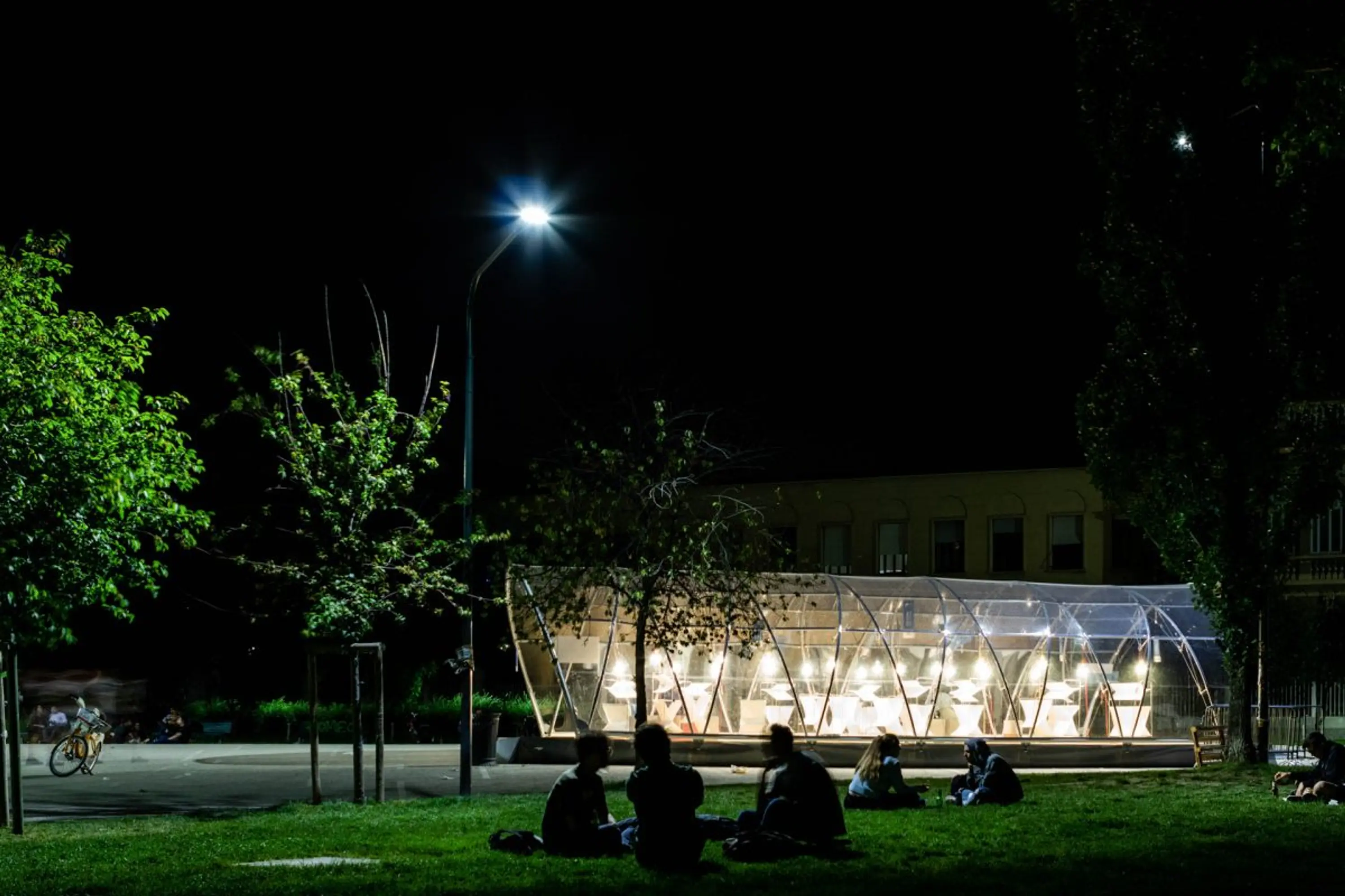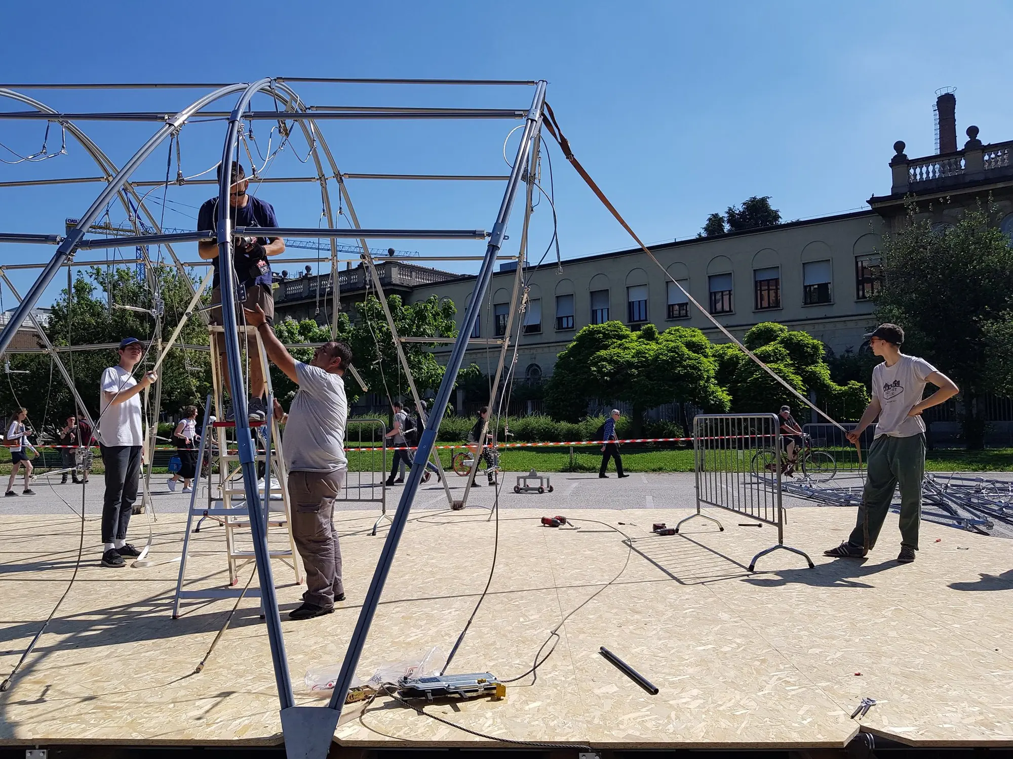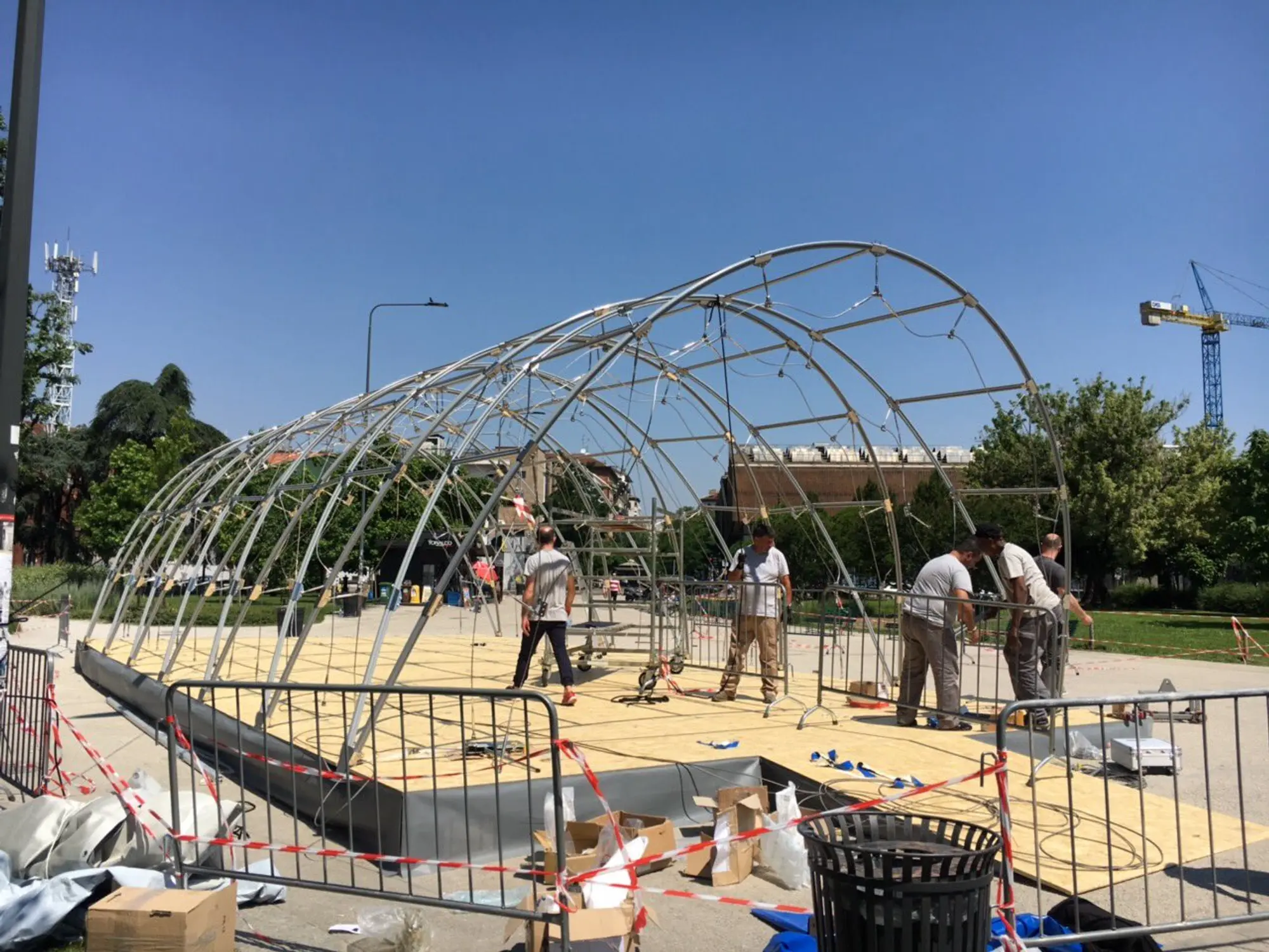 Il padiglione TemporActive, un innovativo progetto di tensostruttura, è stato installato per la prima volta in occasione del TensiNet Symposium 2019, svoltosi al Politecnico di Milano. Collocato in piazza Leonardo da Vinci, di fronte al Politecnico, ha svolto il ruolo di Main Entrance Pavilion per il convegno, offrendo uno spazio lounge per gli sponsor. Questa struttura temporanea ultra-leggera è un sistema ibrido in vetroresina ad archi bending-active, rinforzato da cavi d’acciaio che, curvandosi, diventa resistente pur mantenendo spessori minimi. L'involucro a membrana trasparente e flessibile consente un montaggio rapido e agevole, con la possibilità di riutilizzare il padiglione in altri contesti. La sfida progettuale ha combinato l’alleggerimento della struttura con l’integrazione del tempo come parametro chiave. Dopo il simposio, il padiglione sarà utilizzato come spazio per gli studenti del Politecnico. TemporActive è un esempio di tecnologia avanzata nelle tensostrutture, studiato per leggerezza, mobilità e adattabilità, e caratterizzato da nuove forme e materiali che garantiscono anche condizioni termiche e acustiche ottimali.