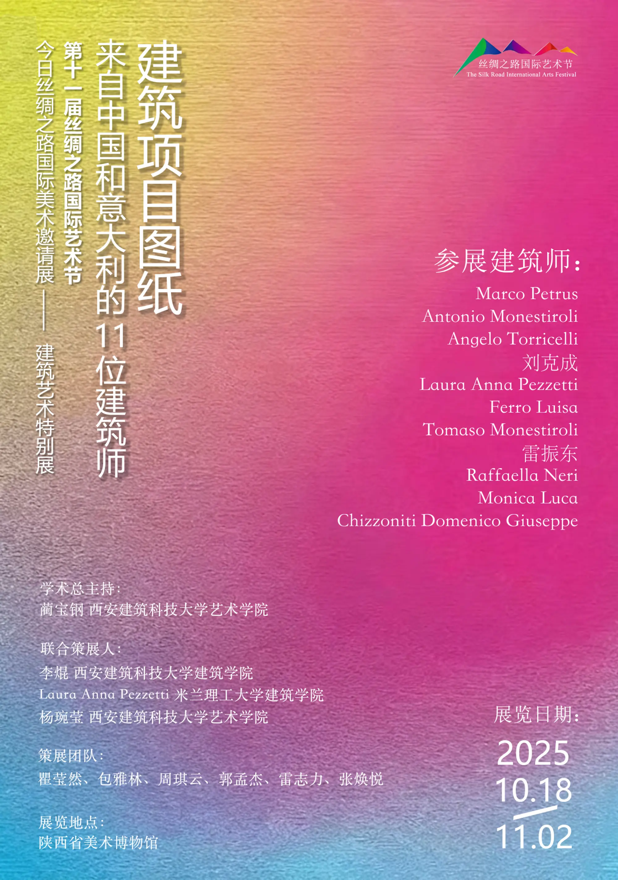 The exhibition presents more than 470 works from 79 countries and regions, fully representing the most recent achievements and cutting-edge trends in the development of the visual arts both nationally and internationally. The special architecture section, entitled “Architectural Project Drawing – 11 Architects from China and Italy”, curated by Professors Laura A. Pezzetti of the Politecnico di Milano and Li Kun of the Xi’an University of Architecture and Technology, includes five urban paintings by the artist Marco Petrus and 23 architectural projects located in countries along the Belt and Road Initiative, amounting to 41 design drawings and 7 models. The exhibition was introduced during the International Fine Arts Salon, held concurrently with the event, through a lecture by Professor Laura A. Pezzetti titled “Architectural Drawings – From the Milan School”.